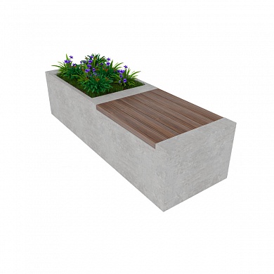 Скамья имеет удобную форму и размеры, которые позволяют комфортно разместиться на ней нескольким людям одновременно. Вазон, расположенный на скамье, позволяет создать дополнительную зону озеленения и украсить территорию.